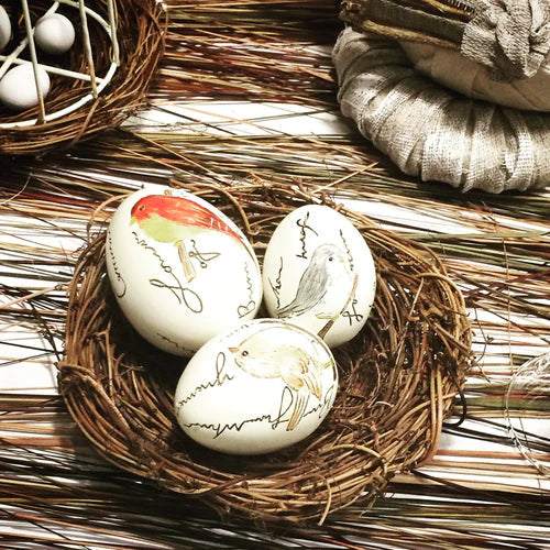 - Uova dipinte: Dopo aver svuotato le uova (con l'aiuto di uno spillo), potete dipingerle in tonalità pastello, come il bianco, il rosa antico o l'azzurro polvere. Questi colori sono perfetti per lo stile shabby chic.