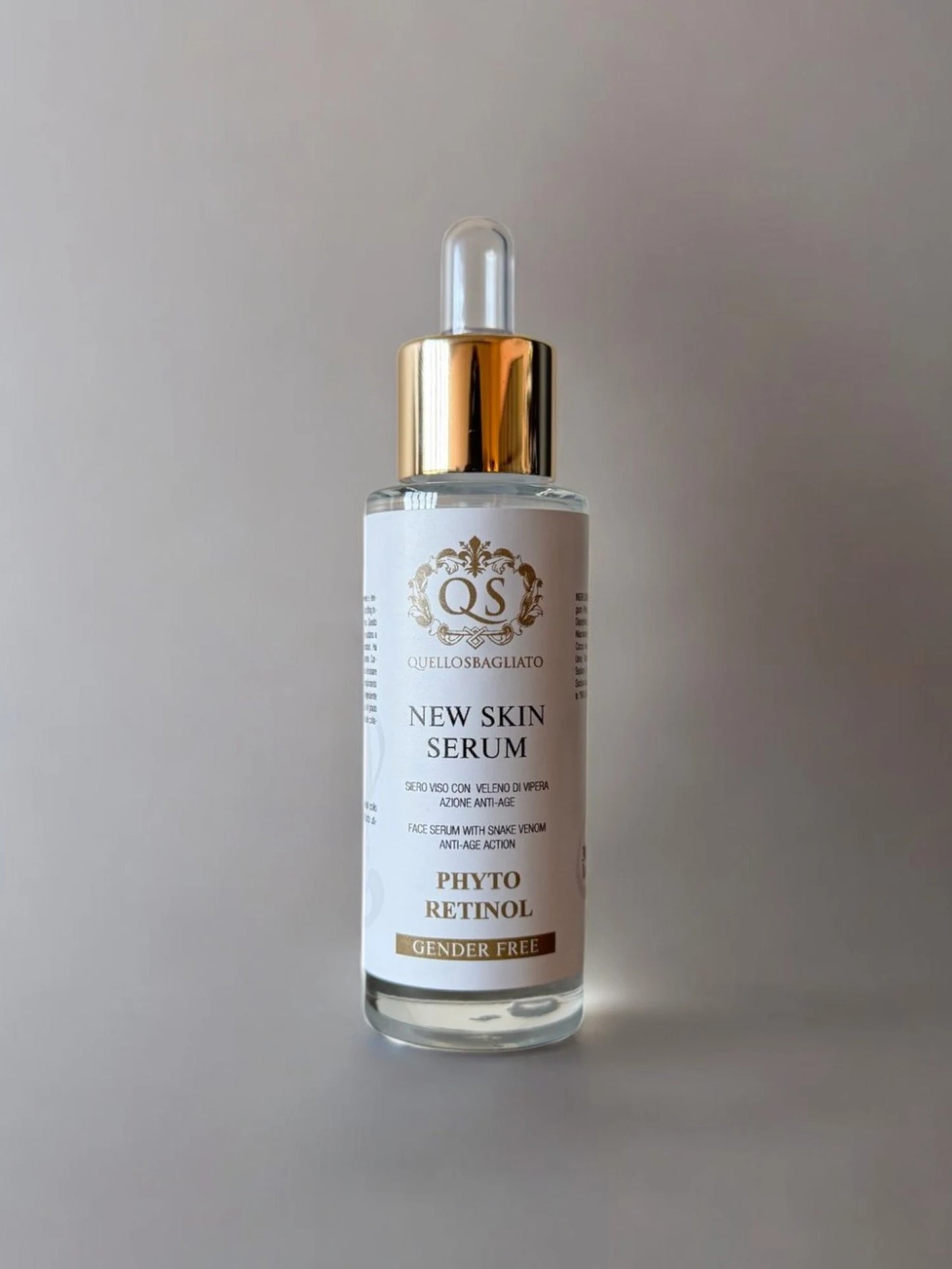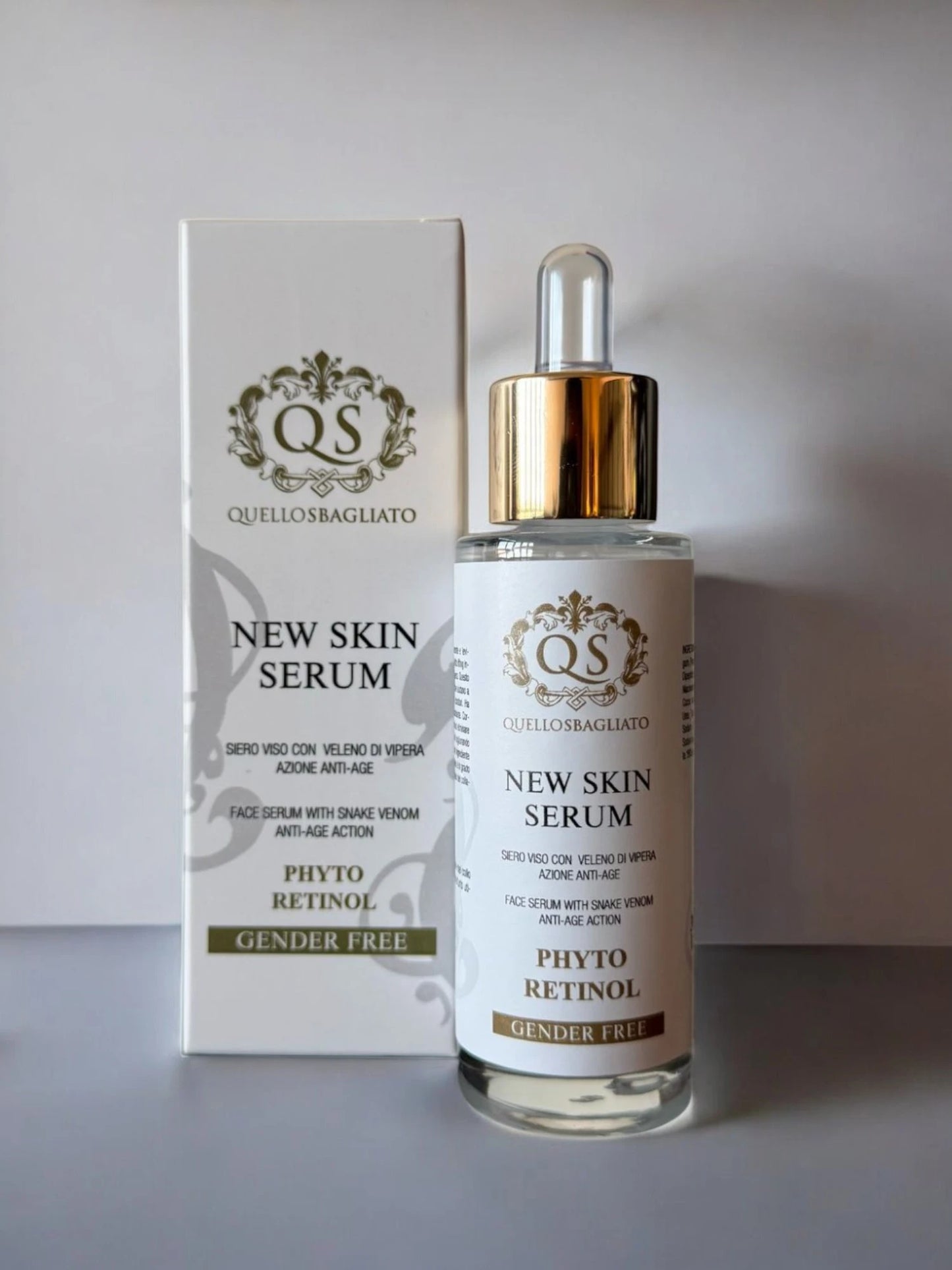 New Skin Serum è un potente siero anti-age formulato con attivi che svolgono un effetto distensivo, rimpolpante e illuminante.